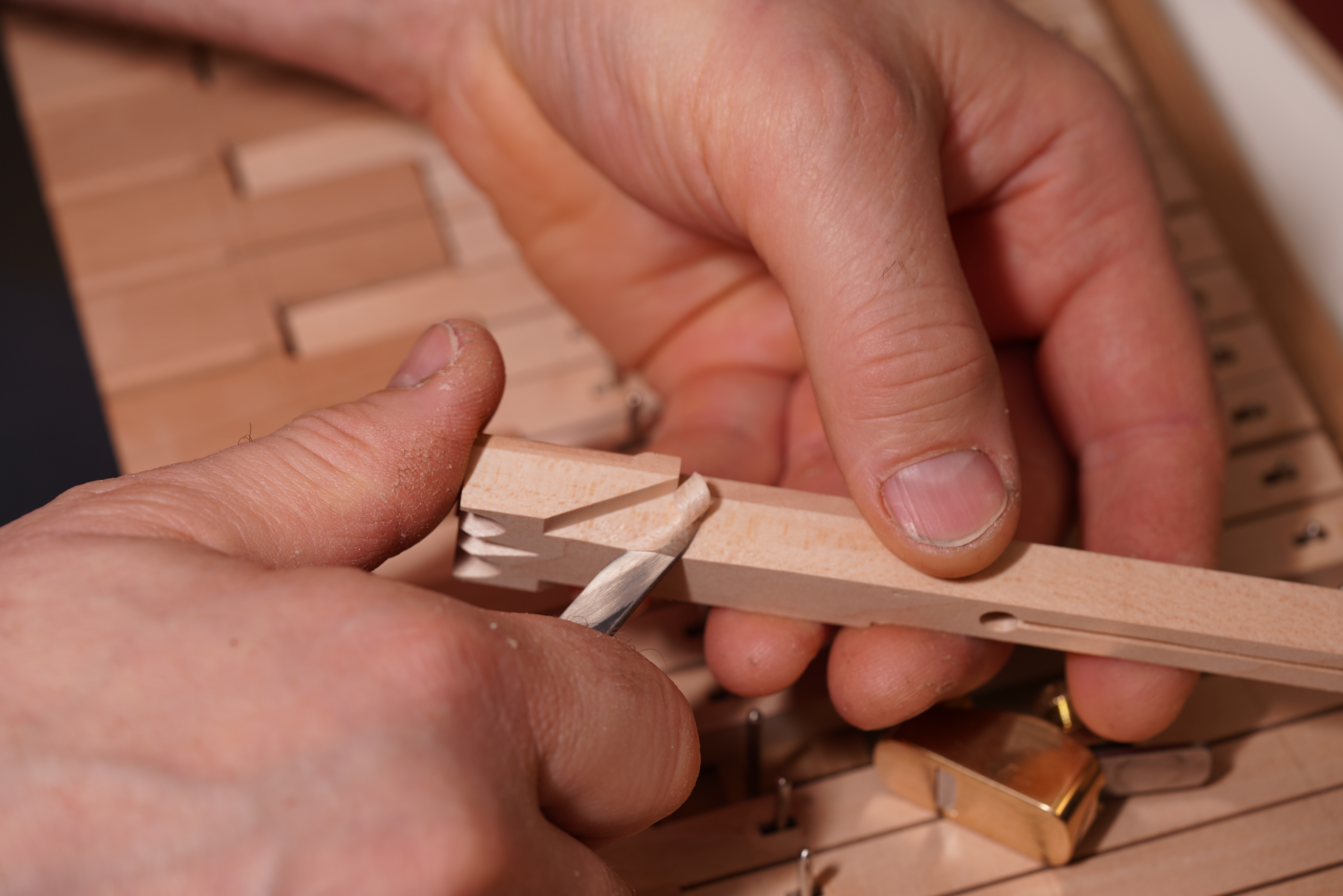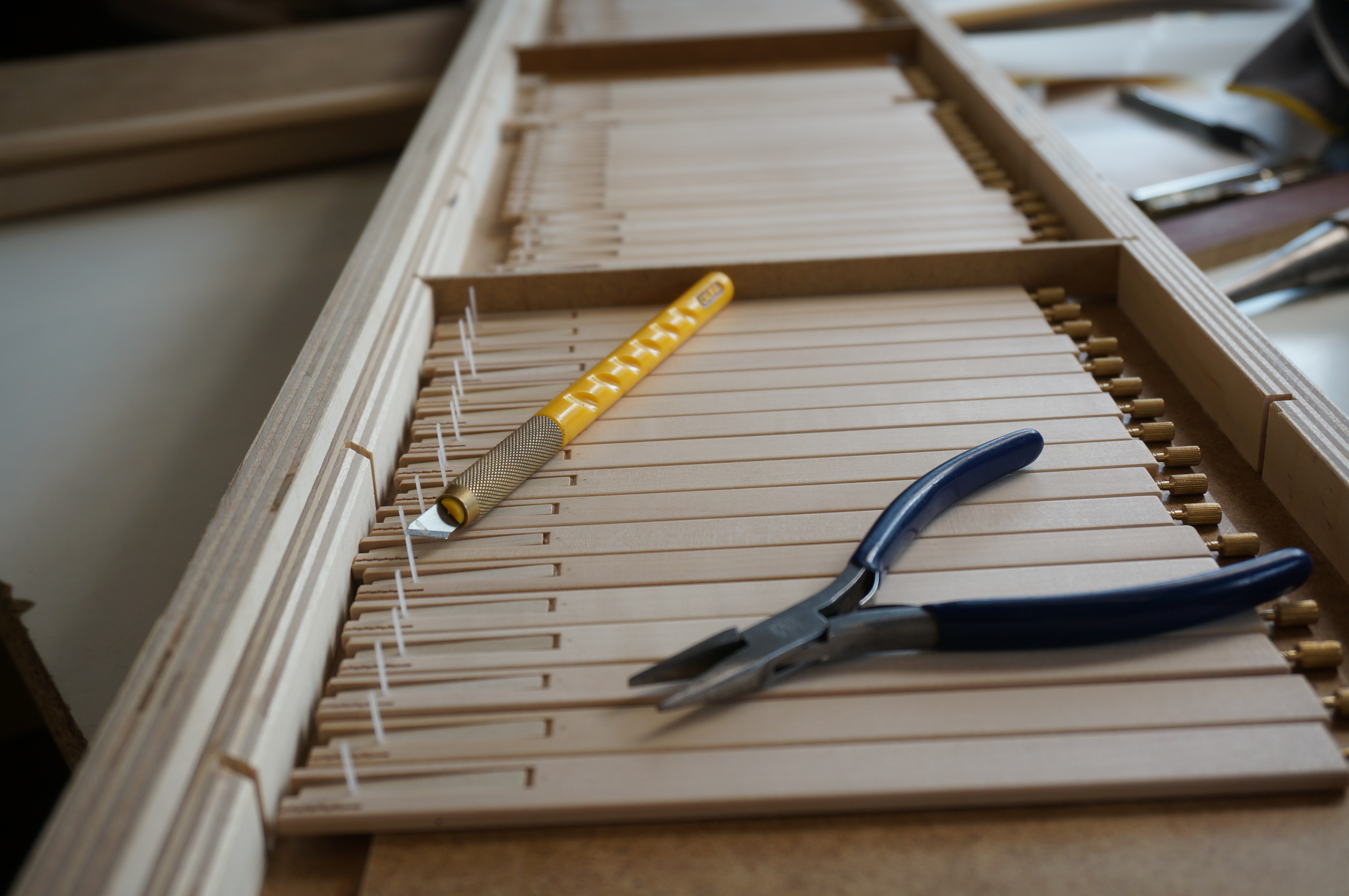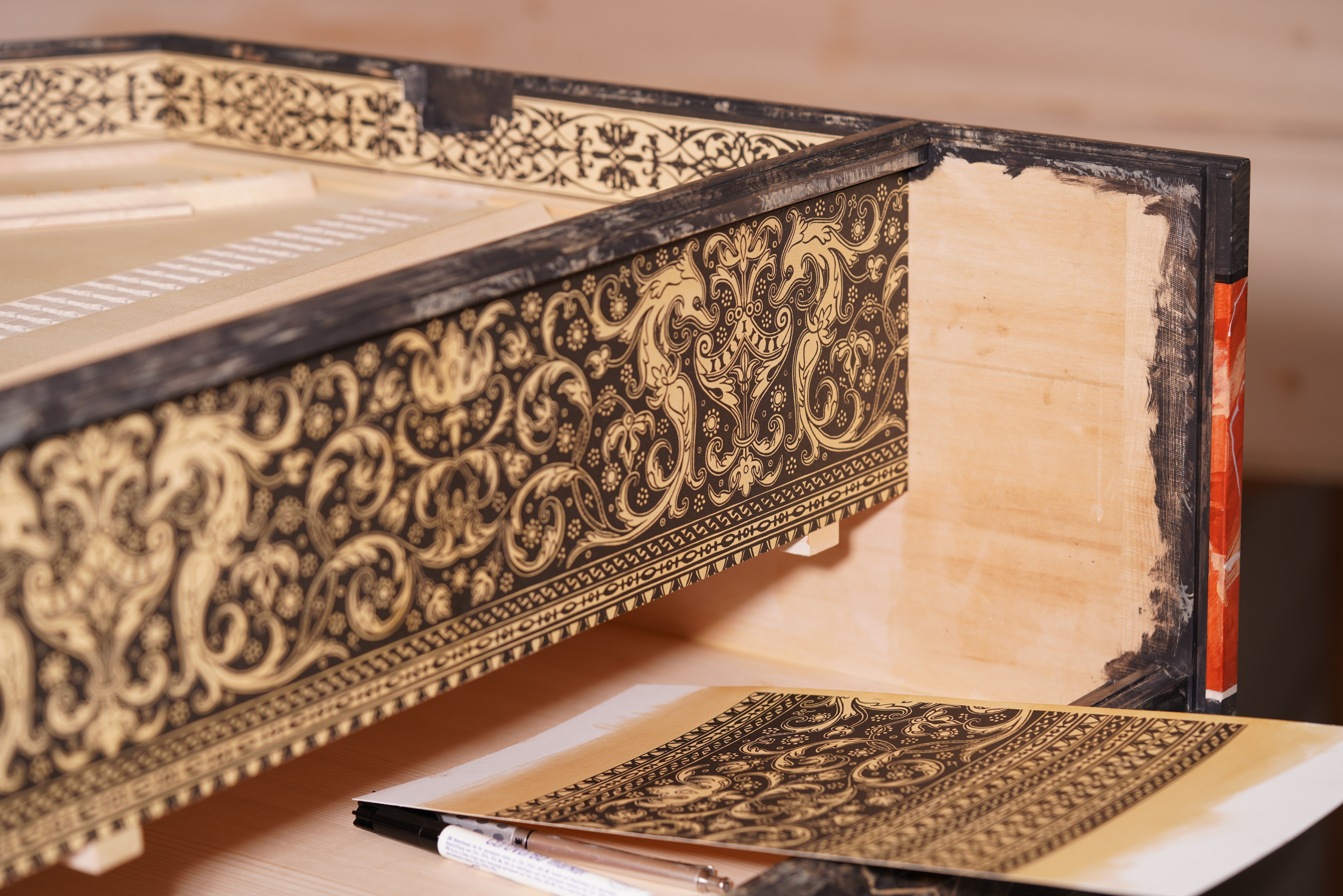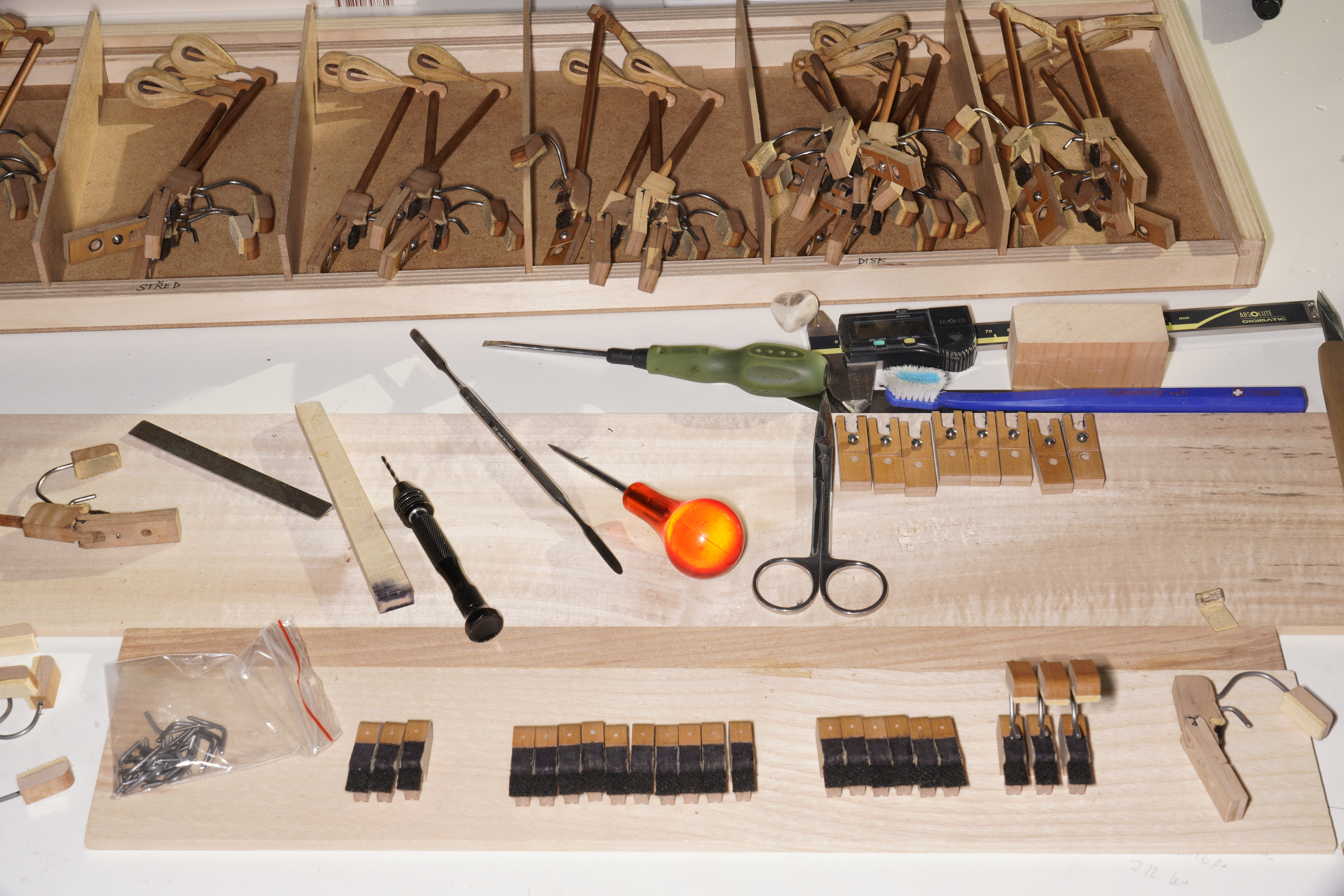 In our work we use period-appropriate craftsmanship and artistic techniques as well as historically used materials, alongside the most modern technologies, materials, techniques, machines, and scientific knowledge where appropriate and beneficial for the quality of our instruments. We emphasize the quality of workmanship and high precision of the mechanical parts, which affect the exact and flawless operation of the mechanism and the sensitivity of play.