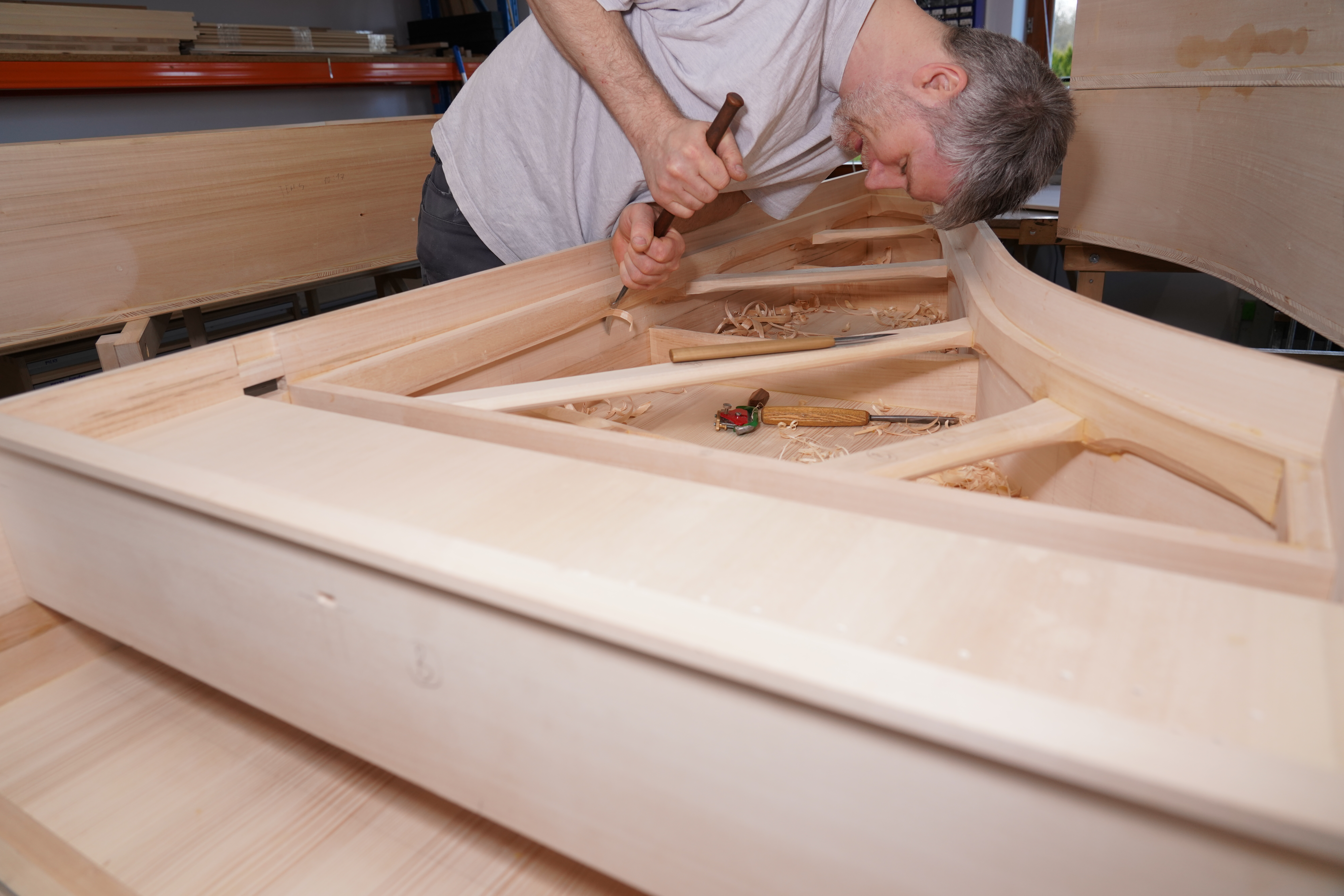 We base our work on careful study of preserved historical instruments, and from this, we construct our instruments. In many cases, we faithfully adopt the original design solutions and string scales that we consider proven and optimal. If certain historical designs shows imperfections, we make sensitive structural modifications aimed at improving the stability and reliability of the instrument. We use modern technologies and scientific knowledge only where they can contribute to a better understanding of historical instruments or to the precision of craftsmanship—such as in measurement, documentation, or structural calculations. We view these tools as support for traditional work, not a replacement of it.